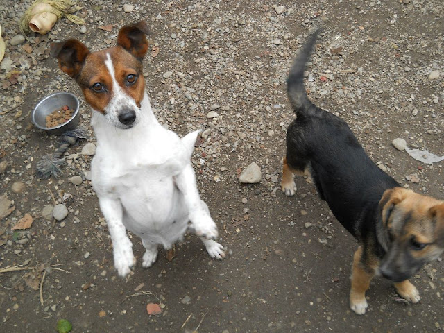 Rescued from that horror place with her older sister, Kiki. Both of them had hardly any decent human contact, so they were very scared of people. But she followed her sister everywhere and when Kiki decided to trust me, so did Telli. She was the cutest little puppy ever, playful and loving, although still shy if picked up. I found her a home near Moreni with a sweet old lady and her children. They all love Telli (now Kiki), but she is still pretty wild. I guess she felt confused once her older sister wasn't there to show her what to do. I offered to take her back, but this nice family loves her very much and they offer her time and space to settle in. I guess she came a long way from being hungry and alone and close to death every day.